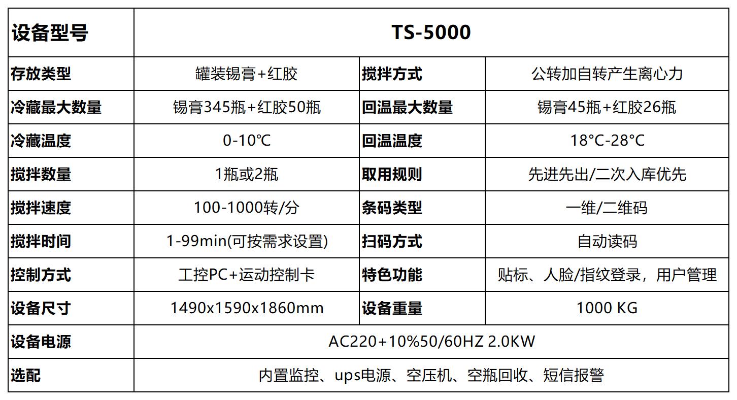 TS-5000 锡膏红胶智能混装管理柜 —— 双物料高效存储解决方案
